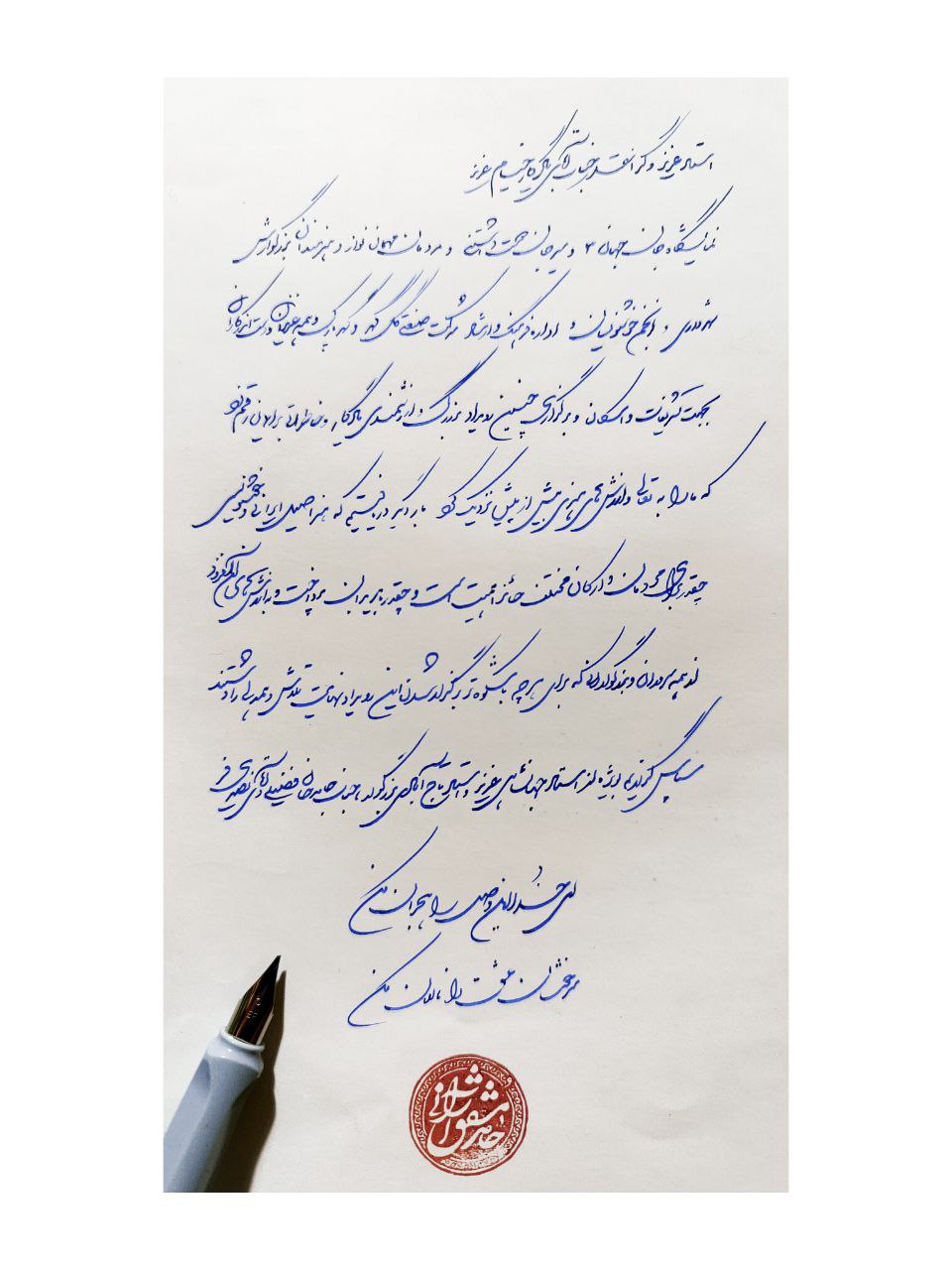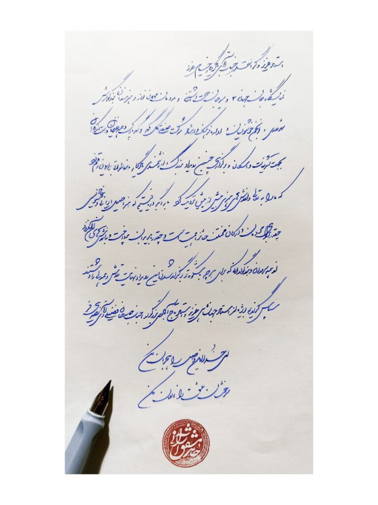 وبسایت رسمی آزاده رستمی و حامد مشفق آموزش خوشنویسی نوین تحریر – نستعلیق و شکسته – آموزش خوشنویسی با خودکار، خط خودکاری، خط با خودنویس و خوشنویسی با قلم | آموزش خوشنویسی با خودکار، قلم دیجیتال و خودنویس و قلم – سفارش خطاطی و سایر هنرها